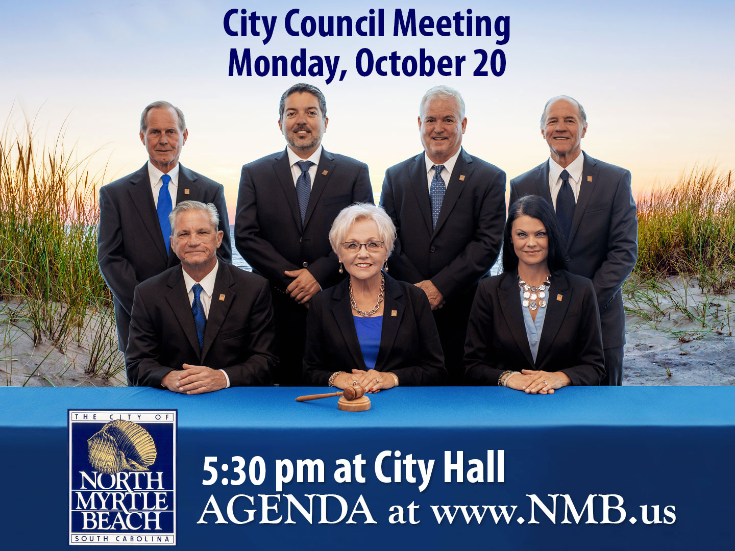 NORTH MYRTLE BEACH, S.C. -- The North Myrtle Beach City Council will meet in a regularly scheduled meeting on Monday, October 20, at 5:30 PM at City Hall.